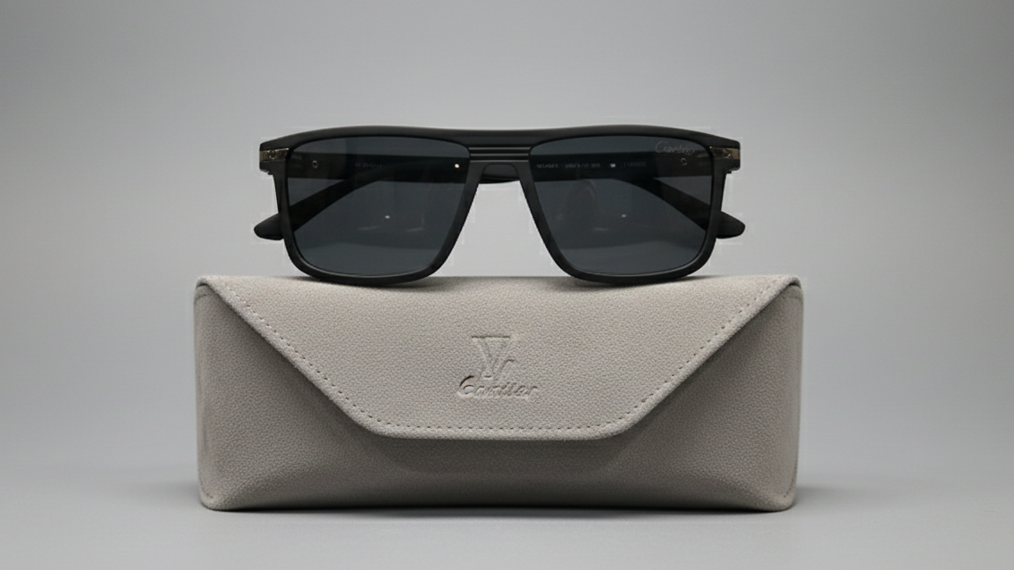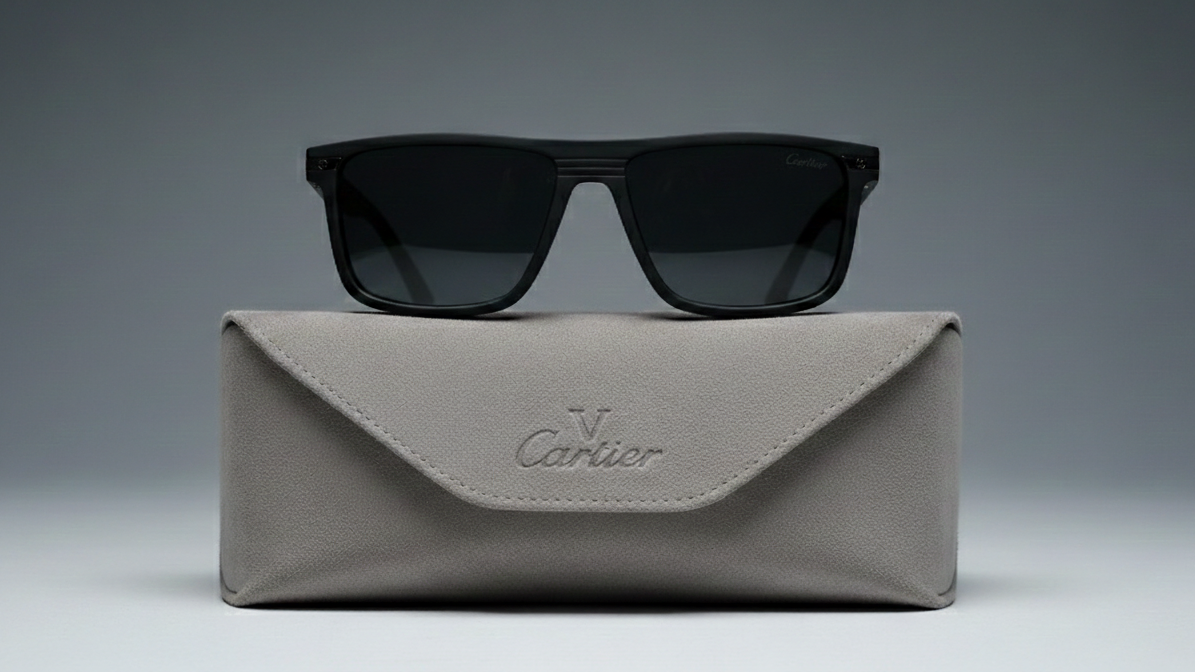Cartier-Original Polarized Sunglasses Matt Black Smart Wayfarer Style