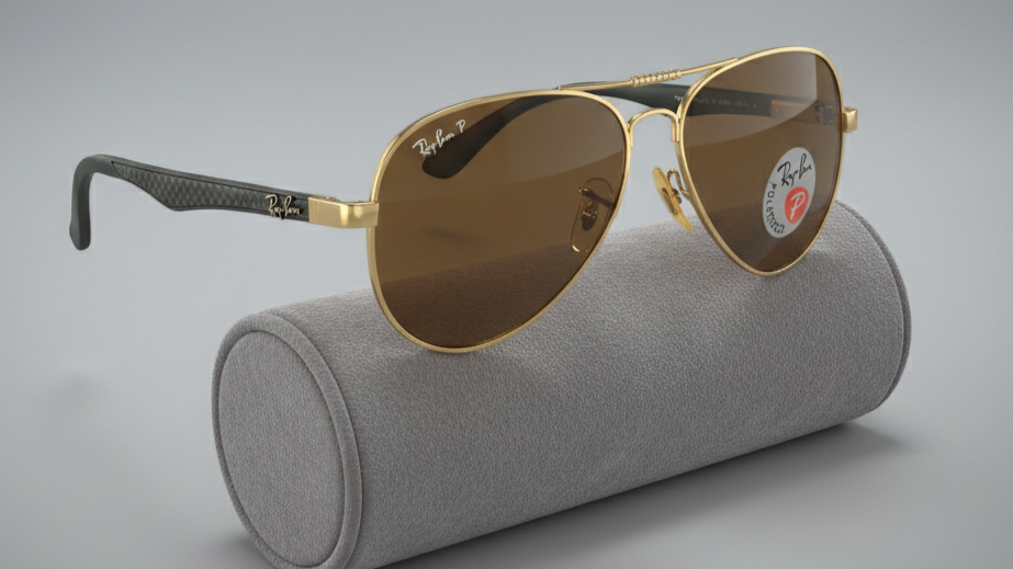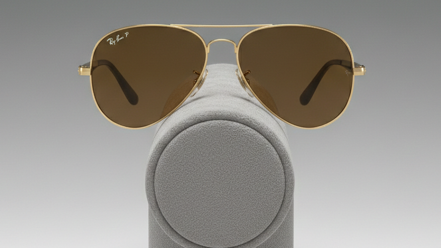 Ray ban-orignal brown polorized glasses-aviator shape-stainless steel frame-matt sheet legs quantity